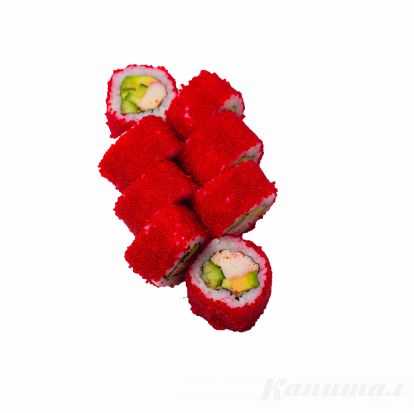 Нори, рис, авокадо, снежный краб, острый соус, икра тобико.